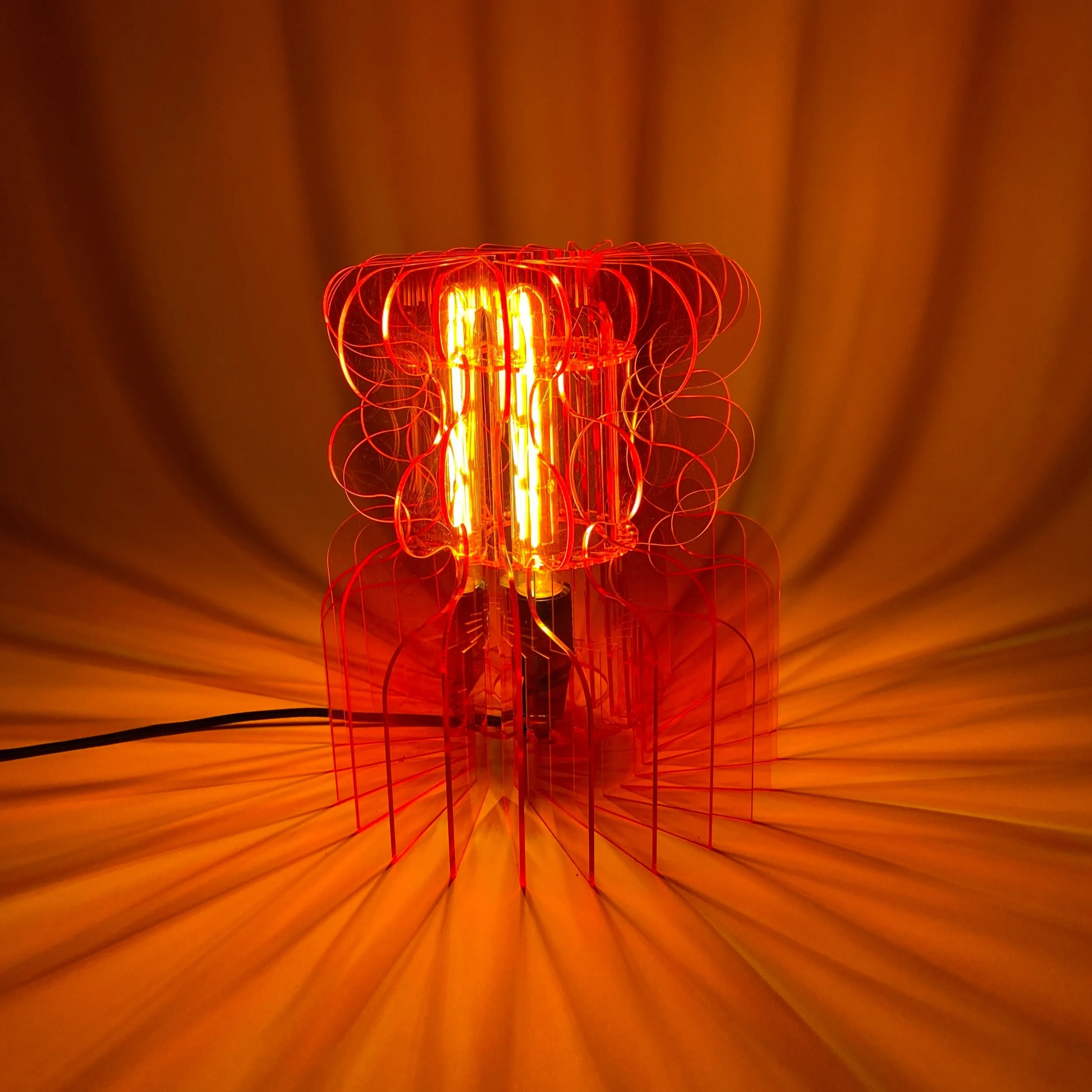 This lamp not only adds a vibrant touch of color to the room in the evening but also creates colorful shadows during the day when sunlight shines on it.